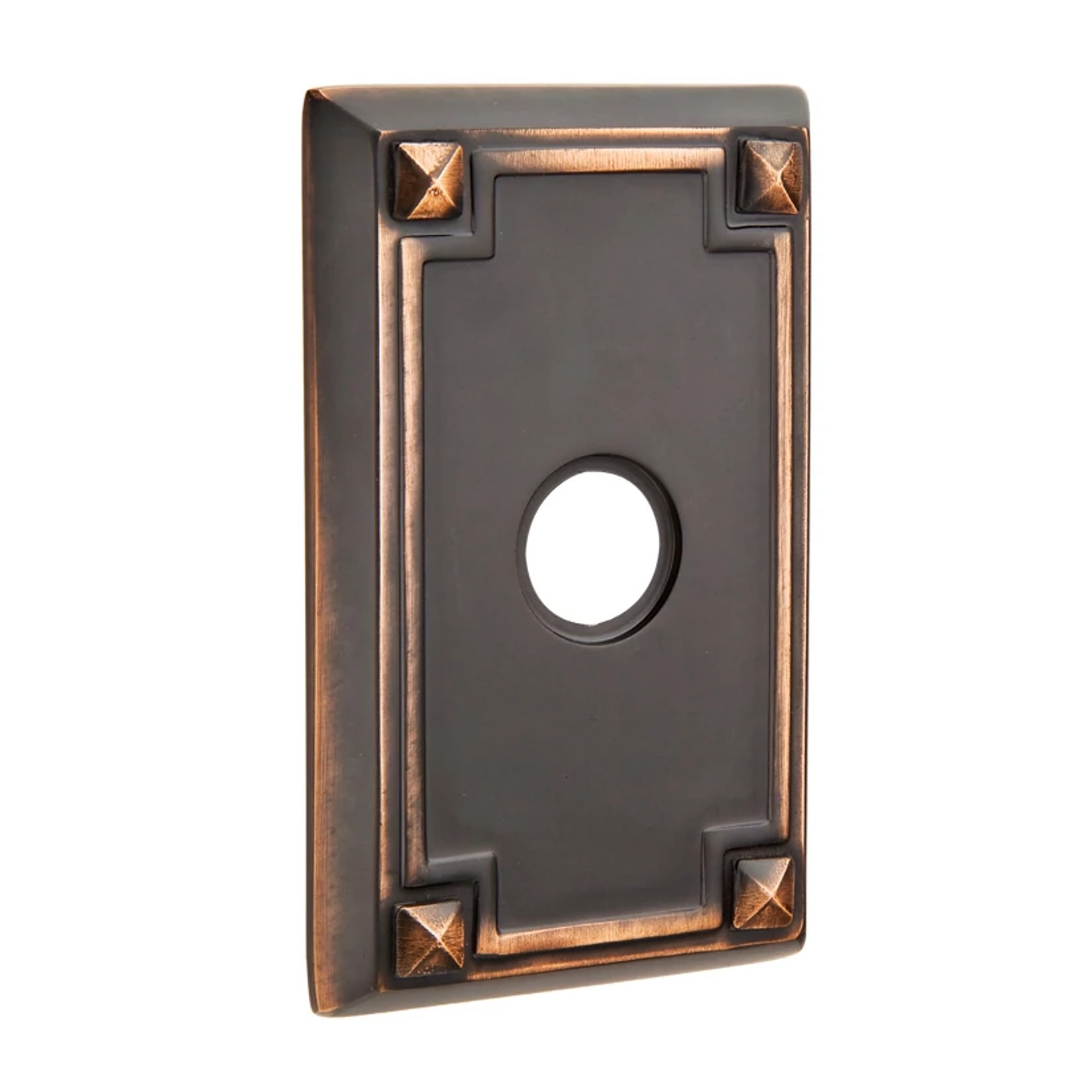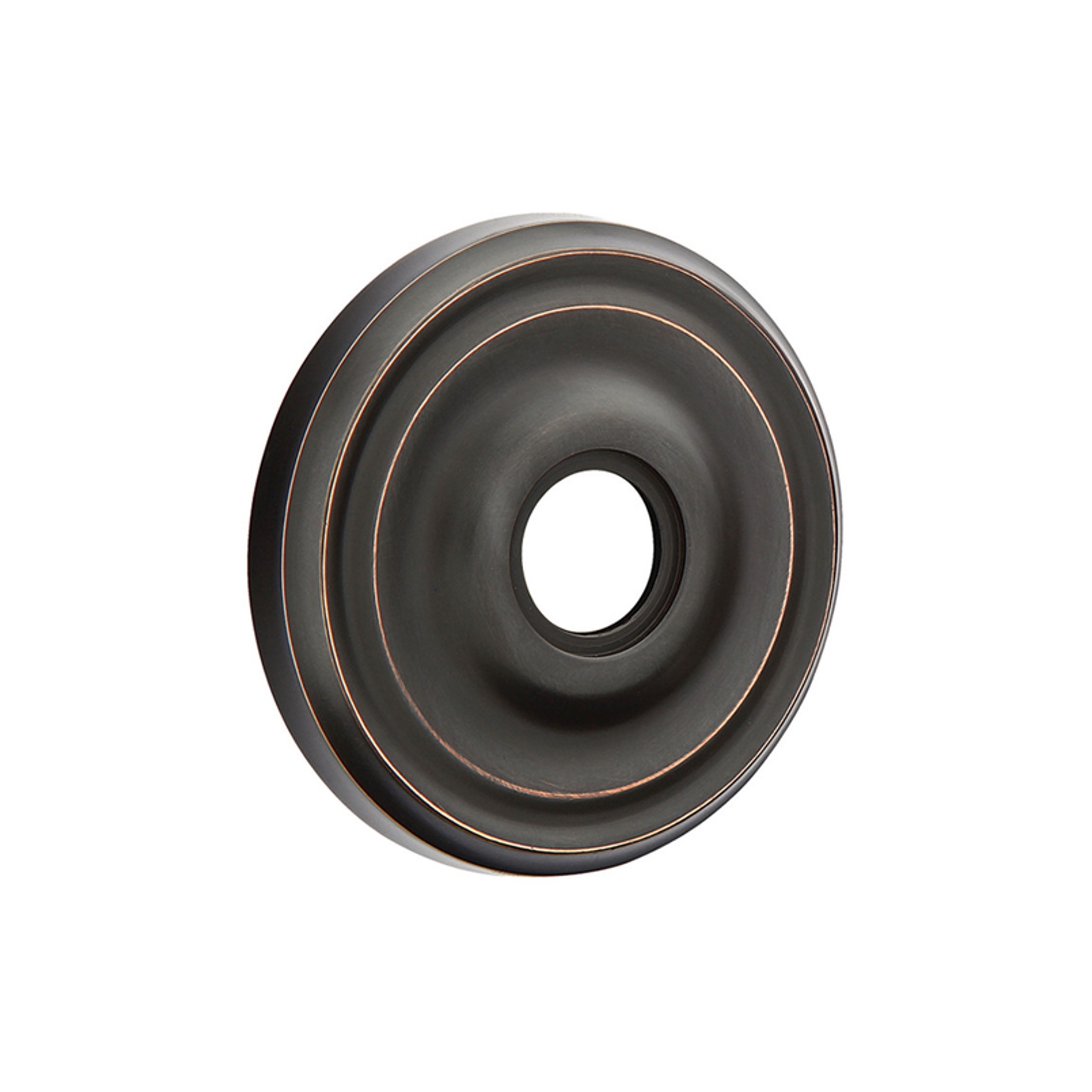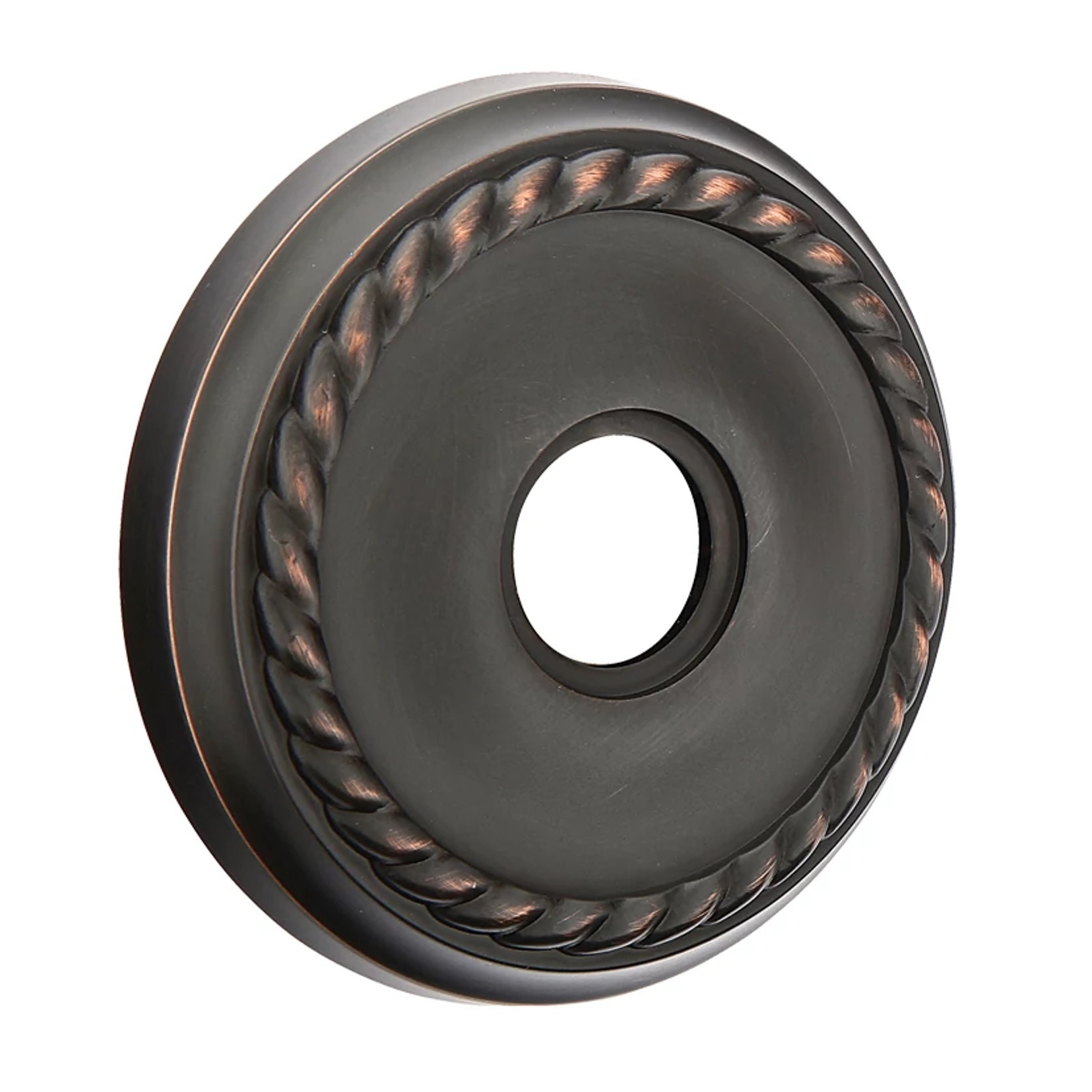 Emtek's Oil Rubbed Bronze finish is underlain with copper. Normal use will produce natural relief of the oxidized finish and reveal highlights on raised portions of the door handle design